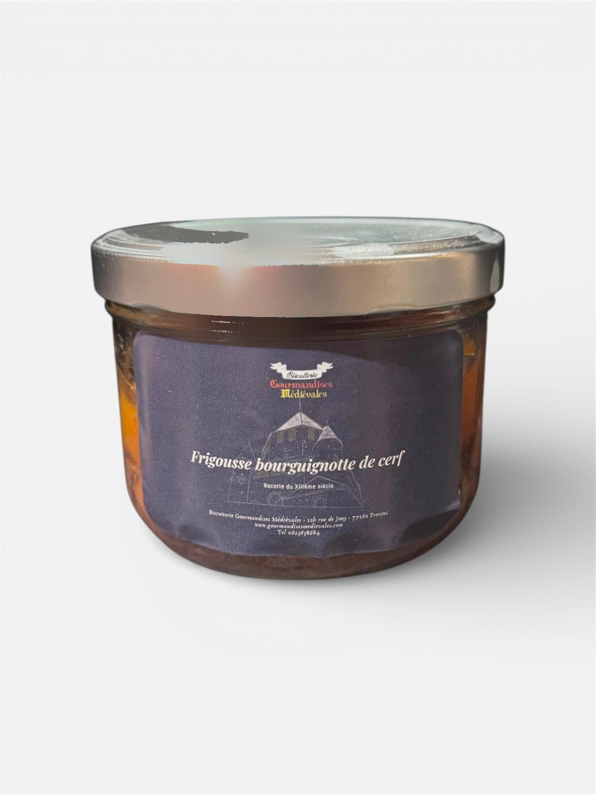 Cette frigousse de cerf est composé de carotte, marron, vin rouge, vinaigre de vin sans oublier les herbes aromatiques et les épices qui lui donnent son goût inimitable. Recette inspirée du XIVème siècle.