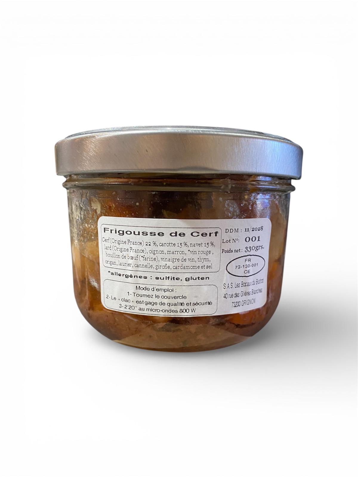 Ingrédients : Cerf (Origine France) 22 %, carotte 15 %, navet 15 %, lard (Origine France),